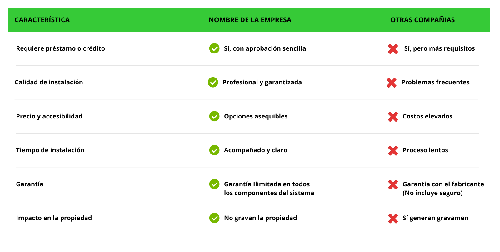 Garantía Ilimitada en todos los componentes del sistema y seguro contra huracanes, vandalismo y más.